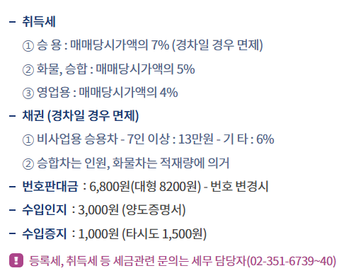 참고로 세금은 취득세를 납부하여야 하고 추가로 서울특별시 도시철도공채를 매입해야합니다.