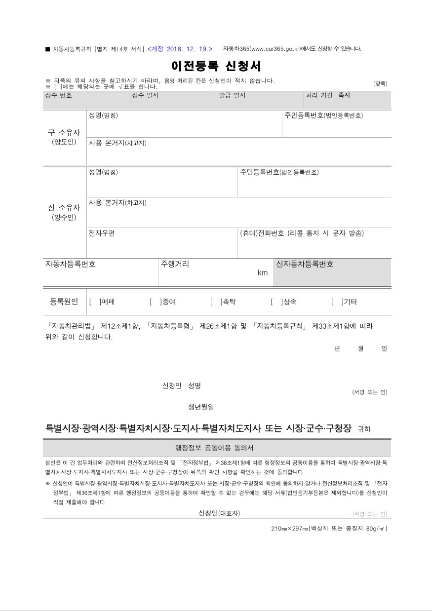 양도인의 차량 정보와 주행거리를 알고 가야 이 서류를 작성할 수 있으니, 왠만하면 양도인의 자동차등록증 한장 있으면 편합니다.