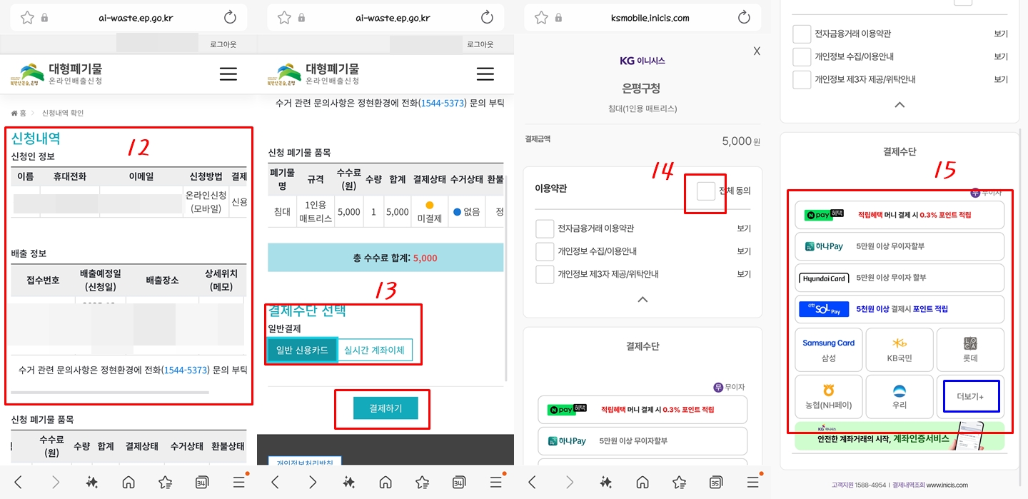 14. 신용카드나 실시간 계좌이체를 선택하면 반드시 이용약관은 전체동의를 해주시면 됩니다.