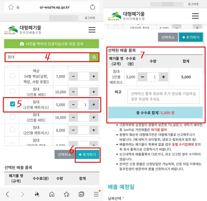 모바일로 통해 해보니 회원가입부터 결제까지 간단하게 신청할 수 있었는데요, 5분이면 충분했습니다. 은평구에서 침대 같은 대형 가구 버리실 분들 추운데 동사무소 가시지 마시고 인터넷으로 신청하는 방법 참고하세요.