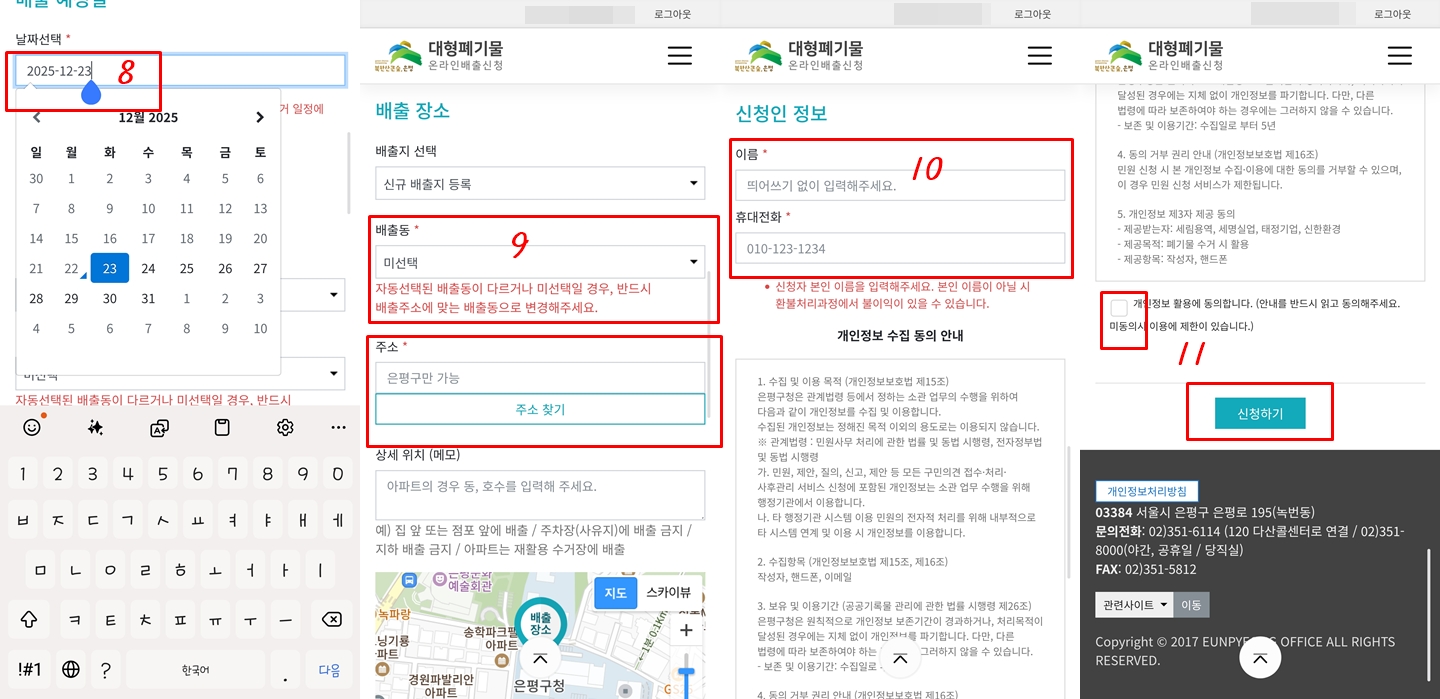 10. 신청인 이름과 휴대전화 번호를 기재해 줍니다.